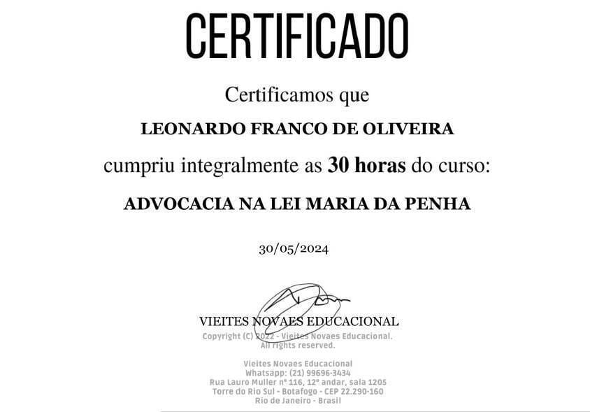 Assim, a experiência do Dr. Leonardo Franco de Oliveira na defesa do homem em casos da Lei Maria da Penha garante que você terá: